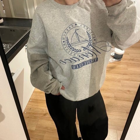 En strl M men den kan jo sitte oversized som den gjør på meg
