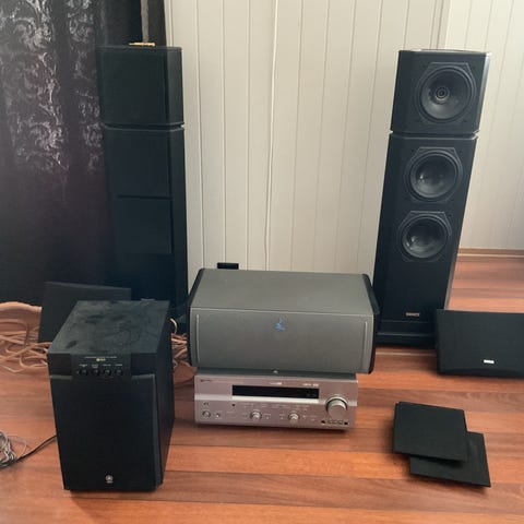 Pioneer VSX-930-K AV-receiver med støtte for 7 kanaler, 12.2 multikanals lyd, og HDMI-tilkoblinger. Enhetens farge er svart.