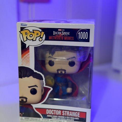 Selger Funko Pop-figuren av Doctor Strange slik han ser ut i filmen Spider-Man: No Way Home. Dette er nummer 912. Figuren kommer i original eske og viser Strange med sin ikoniske kappe (Levitation Cloak) og Eye of Agamotto.
