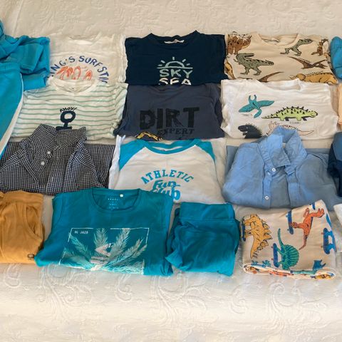 Barneklær for gutt i størrelse 122/128 selges samlet. Inneholder: