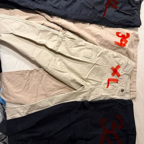 Cargobukser i militærstoff str. L. Brukt, men fortsatt i god stand. Eneste anmerkning er at man kan se den er vasket (men ikke utvaska).