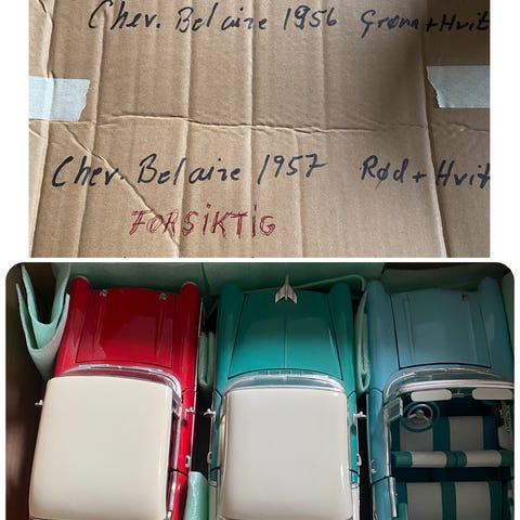 Samling av 5 modellbiler i 1:24. Bilene har kun stått på hylla, ikke brukt.