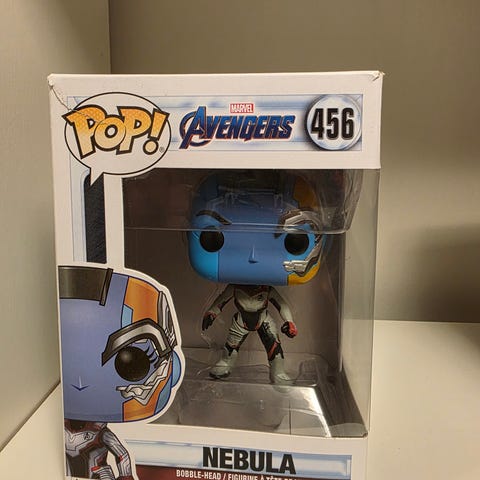 Selger Funko Pop-figuren av Tony Stark i sin Quantum Suit fra storfilmen Avengers: Endgame. Dette er nummer 449 i Marvel-serien. Figuren viser Tony klar for tidsreisen, kledd i den avanserte hvit- og rød-grå drakten.