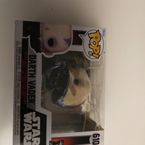 Selger den ikoniske Funko Pop-figuren av Darth Vader fra Star Wars-universet. Dette er nummer 597 i serien. Figuren viser Vader i sin klassiske svarte rustning, med kappen blafrende og sitt røde lyssverd tent, klar til kamp.