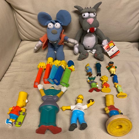 Selger en lot med leker og våpen fra 80-90-tallet.