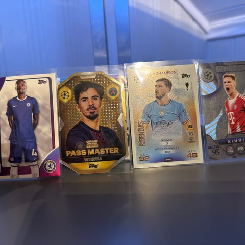Topps UCC flagship, Relic Card med Denzel Dumfries, midtbanespiller for Inter Milan. Kortet er fra UEFA Champions League 2025/26-sesongen og inneholder en del av spillerens drakt.