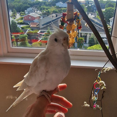 Selger min indiske halsbåndparakitt. Den er ikke tamm , men med rett eier å mye tolvmodighet kan nok dette bli tamm