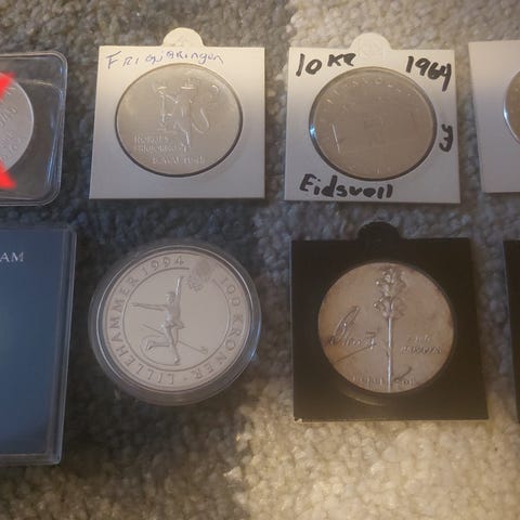 Her er det forskjellige mynter bl.a kongelig mynt brev, gamle norske mynter, minnemynt osv.