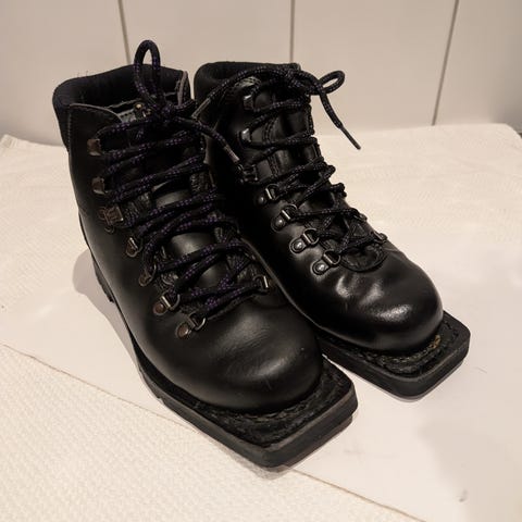 Veldig god stand. Fine sko for fjellski. Mb se binding er den med tre tapper for tre hull i skoen. Veldig stødige og stabile sko å gå med.