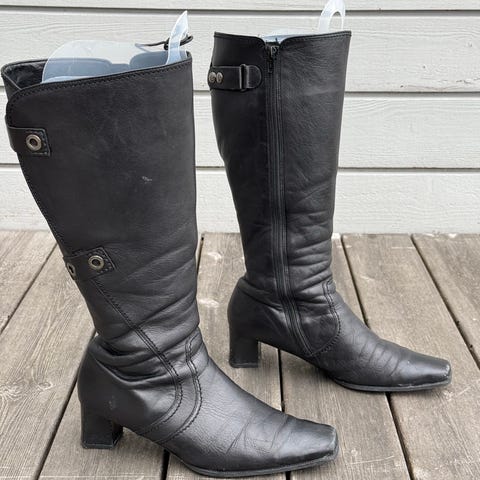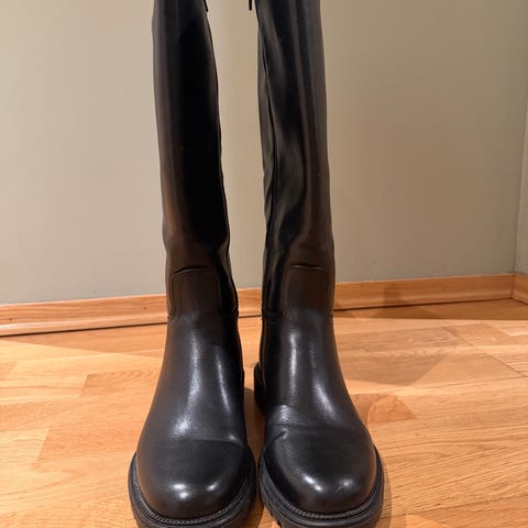 Selger et par sorte høye støvletter fra Tamaris i god stand. Brukt, men fortsatt pene og komfortable. Stødig hæl og grov såle som gjør dem behagelige å gå i.