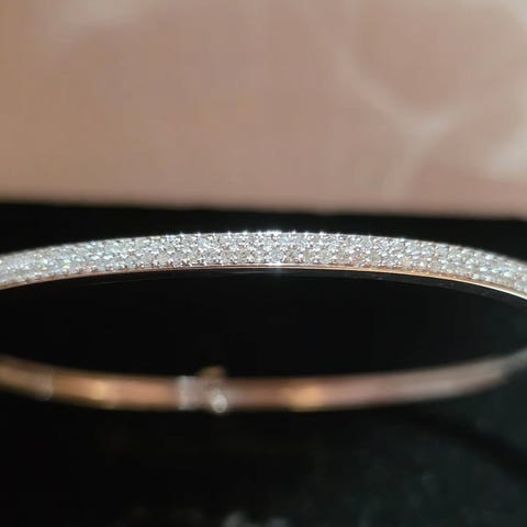 armbånd i gullbelagt materiale med krystalldetaljer, designet for dame. Armbåndet leveres med en dekorativ pose med stjernemønster.
