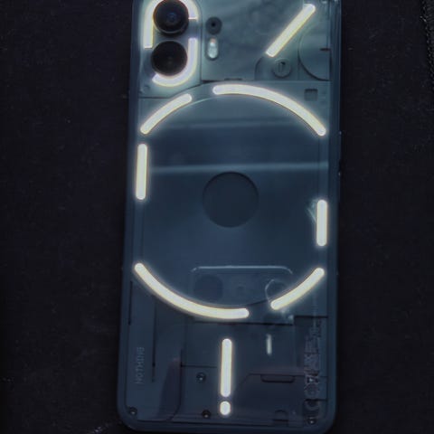 Design: Ikonisk gjennomsiktig bakside med Glyph Interface (lys).