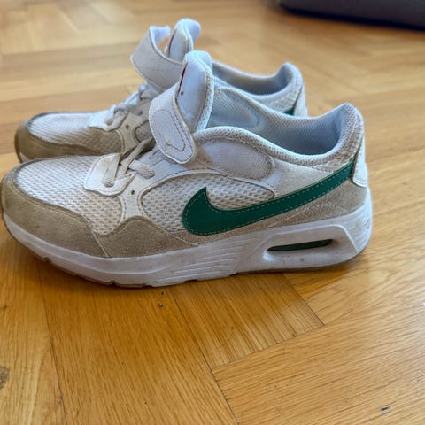 Skoene er lite brukt men fikk fort noen bruksmerker foran på tuppen. Gummituppen på den ene skoen ligger ikke helt inntil materialet, den var slik ny også og har ingen betydning for bruken. Det viktigste er at sålen under er hel og uten slitasje for godt grep på underlaget. Innesålen ble raskt byttet ut med en myk sort såle, finner ikke de hvite originale, dette har heller ingen betydning.
