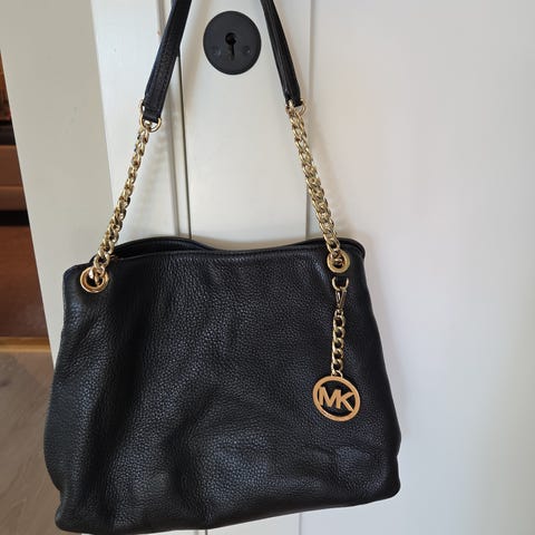 Michael Kors veske i lær for dame. Vesken har en brun farge og er utstyrt med en skulderrem med detaljer i gullfarge. Den har glidelås for lukking.