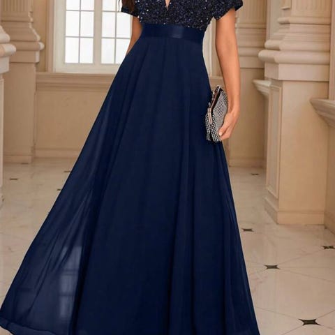 Shein kjole til spesiell anledning i størrelse M for kvinner. Kjolen er blå og laget av tyllmateriale. Designet inkluderer dekorative detaljer og er egnet for formelle anledninger. (Ble for liten til meg)
