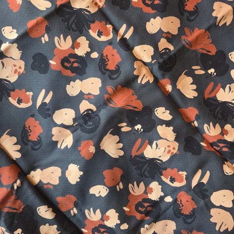 Ferskenrosa bomullsstoff med hvite stjerner, bredde 110 cm. Stoffet består av fire biter med lengder på 4 meter, 4 meter, 2 meter og 1 meter. Egnet til ulike tekstilprosjekter og hobbybruk. Nydelig bomull til festdraktbluse - fra Selfmade.