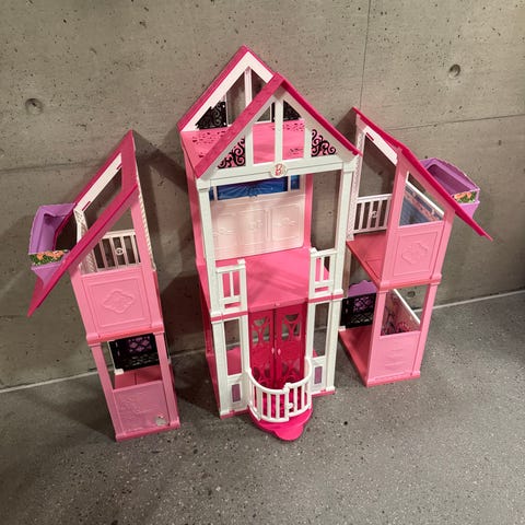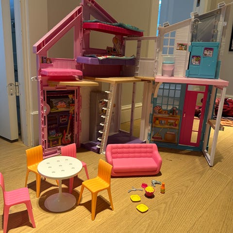 Barbie dukkehus lekehus laget i plast med flere etasjer og ulike rom. Lite brukt.
