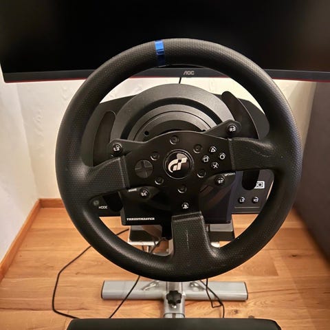 Thrustmaster T248-R selges da det desverre ikke brukes lenger. Veldig fint mid-range ratt og pedalsett som er glimrende introduksjon til simracing. Har personlig brukt dette til F1.