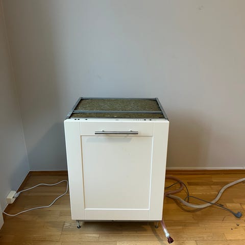 Oppvaskmaskinen fungerer, men startknappen er litt vanskelig og fungerer ikke alltid på første forsøk.