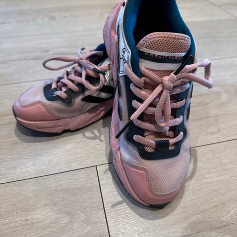 Adidas sko i størrelse 37 1/2 i lilla. Skoene har snøring og en solid såle med mønster for godt grep. Egnet for daglig bruk. Noen bruksmerker, ny vasket