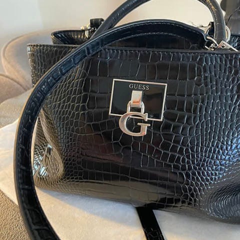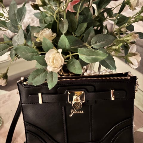 GUESS dameveske laget i svart kunstlær. Vesken har flere rom med glidelås og magnetlukking, samt håndtak og justerbar skulderrem. Innvendig fôr med mønster. Egnet for daglig bruk og organisering av personlige eiendeler.