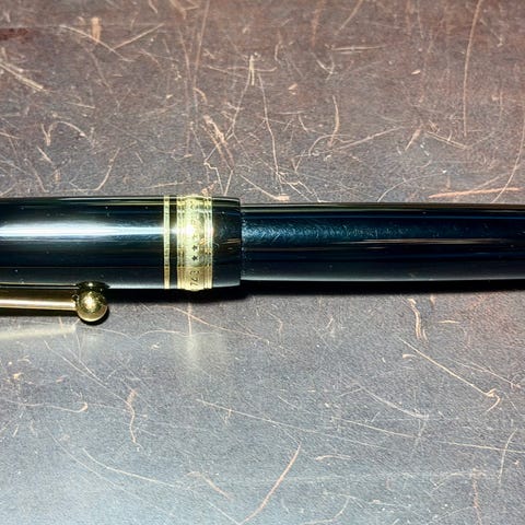 For tiden fylt med Montblank Irish Green blekk, se skriveprøve.