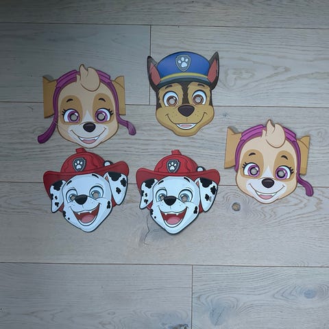 Pent brukt Paw Patrol Chase maske til barn i plastikk. Universal størrelse og strikk med borrelås som festes rundt hodet.