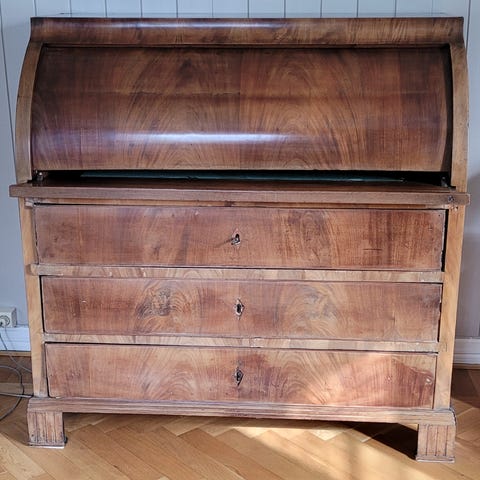 Selger malt skrivepult/ kommode / skatthol med mange små spennende skuffer og skap. Vakre knotter er satt på.