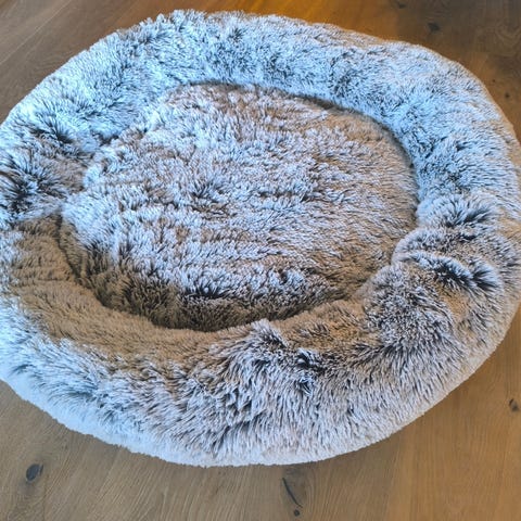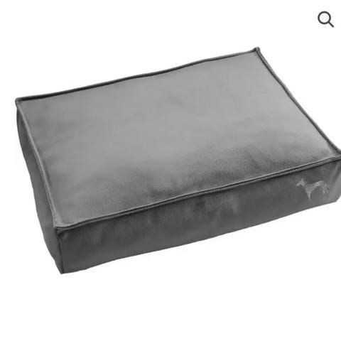 Liggeflaten er polstret med en behagelig skumgummimatte som er overtrukket med myk bamseplysj. Undersiden er av stabil, grov nylon. Alle tre lagene er quiltet sammen. Den høye kanten gir hunden en plass å hvile hodet. Puten kan vaskes i vaskemaskin!
