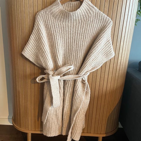 Strikket vest med knyting i livet i one size fra kapphal.