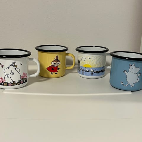 2 Muurla Mummi emaljekopper på 2,5dl. Ene er brukt et par ganger. Den andre er ikke brukt.
