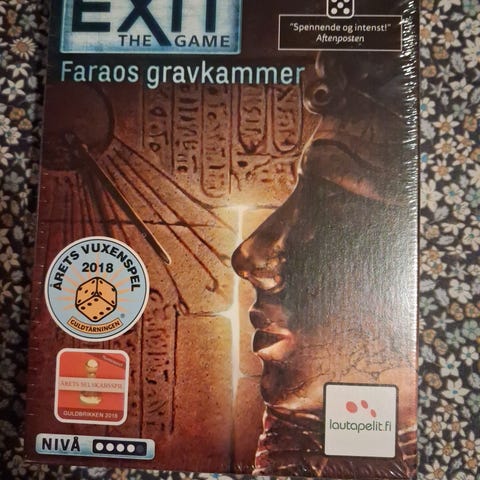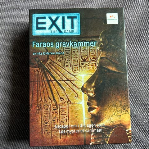 EXIT The Game Faraos gravkammer brettspill. Spill hvor deltakerne løser mysterier i en egyptisk gravkammer-setting. Passer for spillere som liker escape room-konsepter i brettspillformat.