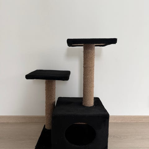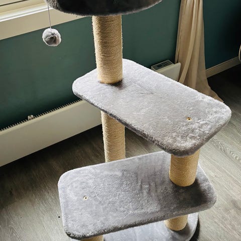 Katt klatrestativ med to plattformer og lekedusker