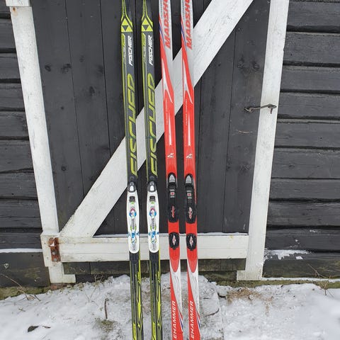Skiene har ingen store riper i såle og er hele i kantene. Meget pent brukt.