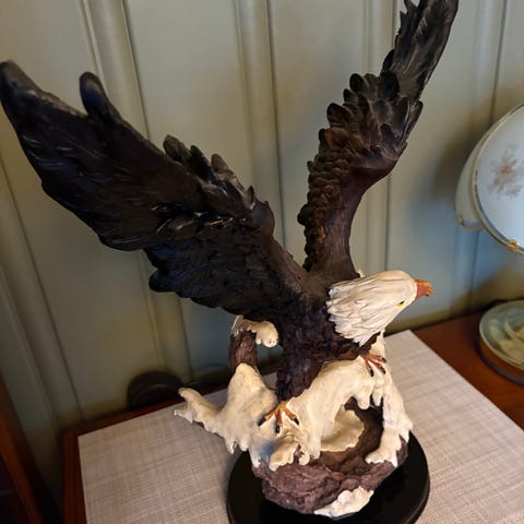 Åpning ved stammen er eventuelt for lyspære, og figuren fungerer som en stemningsfull lampe i tillegg til å være et kunstobjekt. Naturlig patina og slitasje gir autentisk preg. Stil og utførelse typisk for jaktrelatert kunst fra sent 1800-tall / tidlig 1900-tall.