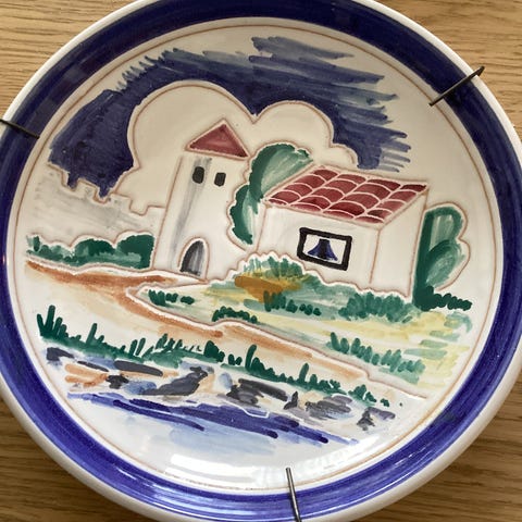 Dette er en håndmalt Vestal Alcobaça veggplate i keramikk.