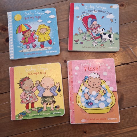 Baby Gogo Kos og klem! er en brett-ut-og-se bok for barn. Boken har fargerike illustrasjoner og tekst som passer for små barn. Den er laget for å stimulere leselyst og oppmerksomhet gjennom interaktive elementer.