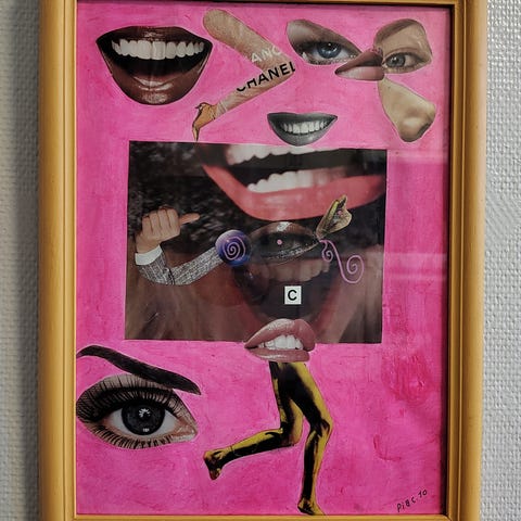 Signert collage i fin ramme, fra rammemaker.. Jeg finner ikke navnet på kunstneren.
