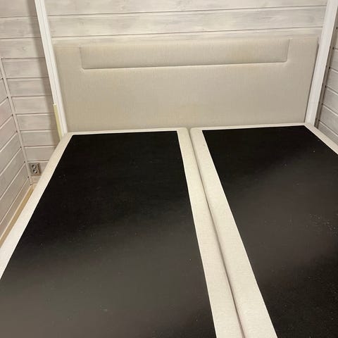 Jysk seng med oppbevaringsskuffer i grå farge. Sengen har en enkel design med to skuffer under for ekstra oppbevaringsplass. Passer til enkeltsengmadrass. Bunn og madrass medfølges.