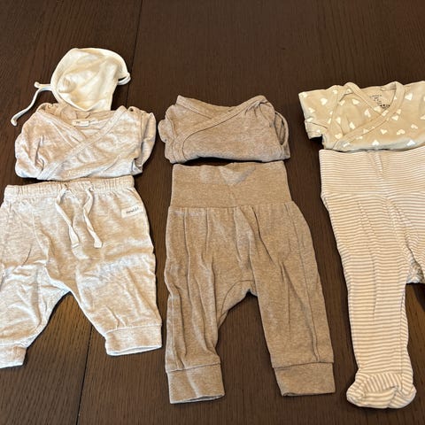 Newbie babyklær i størrelse 56, beige farge. Passer for både gutter og jenter (unisex).