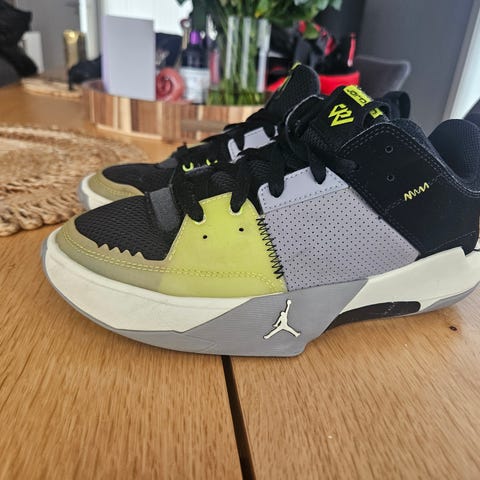 Nike Jordan Barons barnesko for gutt. Skoene har en kombinasjon av svart og grå farge med gullfargede detaljer. Designet for barn i str 42. Som nye for sønnen min hadde de bare i sko utsillingen sin