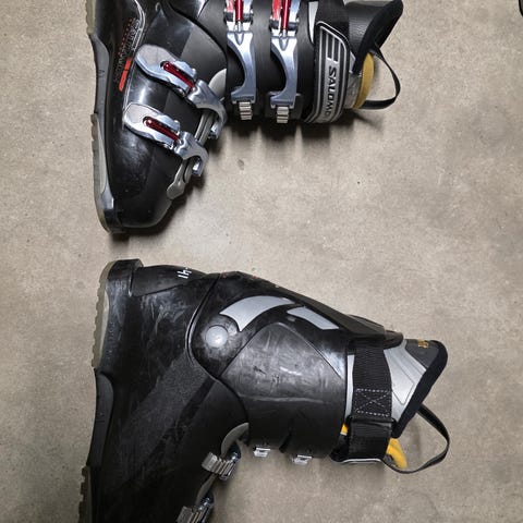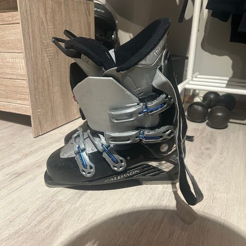 Salomon T1 skistøvler i blå og svart farge. Støvlene har en justerbar spenne og polstret innside for komfort. Egnet for barn eller nybegynnere innen alpint.