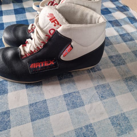 Ikke mye brukt men "skinnet" bak på toppen har flasser av. Str 39. Deilig foret innvendig. Kan sendes