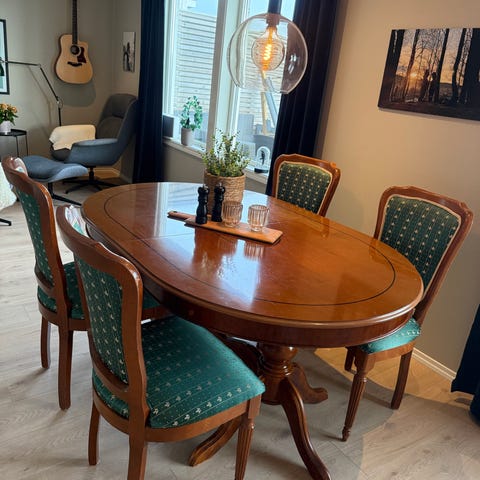 Spisestue i beiset eik inkl skjenk