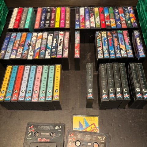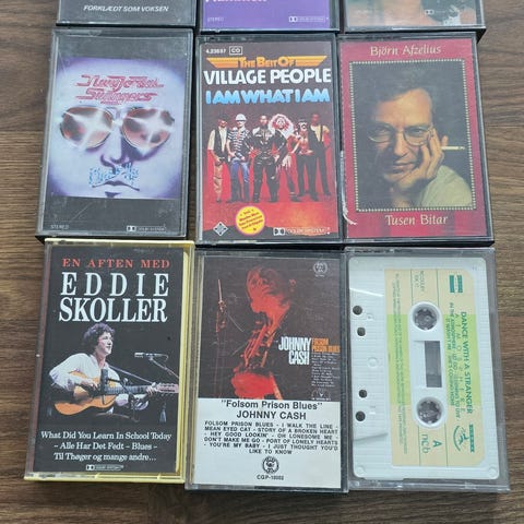 Ikke spilltestet, men originale kassetter og båndet er helt.