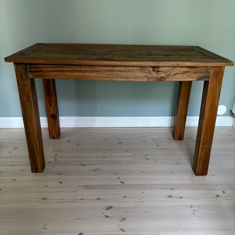 Ingen riper eller hakk, men et par steder er lakken litt lys, se bilde, vi har brukt duk og ikke merket det.