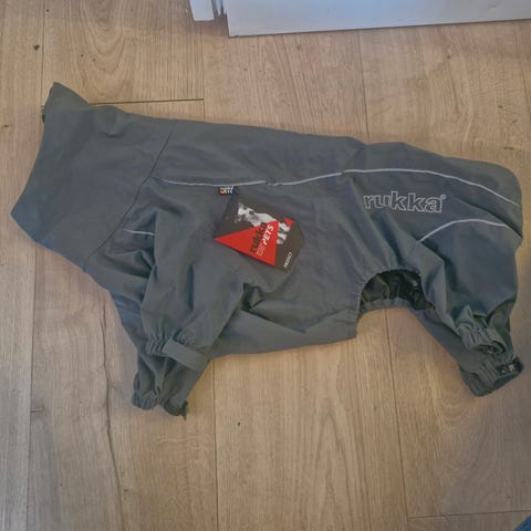 Hurtta Vinterdress til hund i størrelse 302. Dressen er rød med sorte detaljer og laget for å gi varme og beskyttelse til hunden. Materialet består av isolerende og værbestandige stoffer, egnet for kalde forhold.
