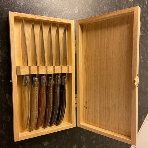 Disse biffknivene fra Forge de Laguiole er elegant utformet i den tradisjonsrike Laguiole-stilen som er ettertraktet for sitt vakre design.