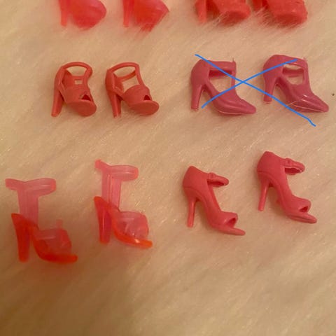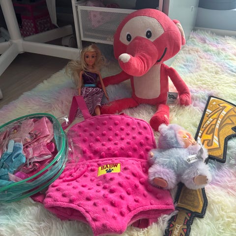 Barbie med et rosa klesskap. Settet inkluderer tre dukker med ulike antrekk og sko.
