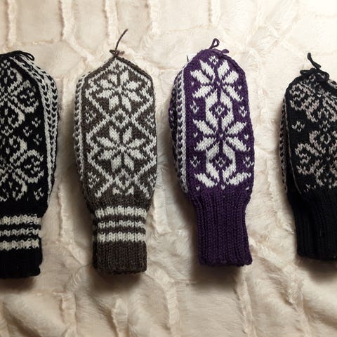 Selger helt nye hjemmestrikkede ullvotter.